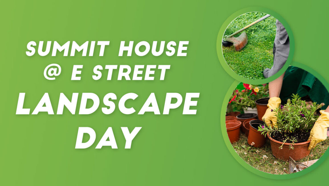 Join us on Sat., March 21, from 9am - 12pm for Summit House Landscape Day as we work together to beautify the Summit House @ E Street Property. This will be a great morning of teamwork, fresh air, and serving together. Let's work together side by side with the whole family to make Summit House even more welcoming for everyone!